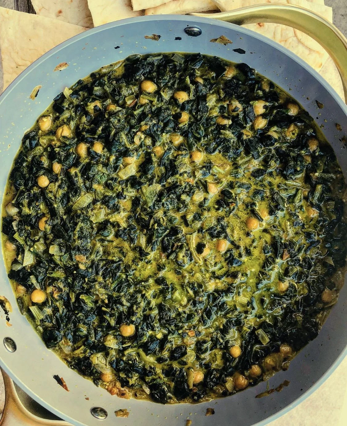 This vegetarian recipe is so delicious! I was inspired by the typical chana saag but made some personal tweaks that I thought elevated the flavor a little bit more.