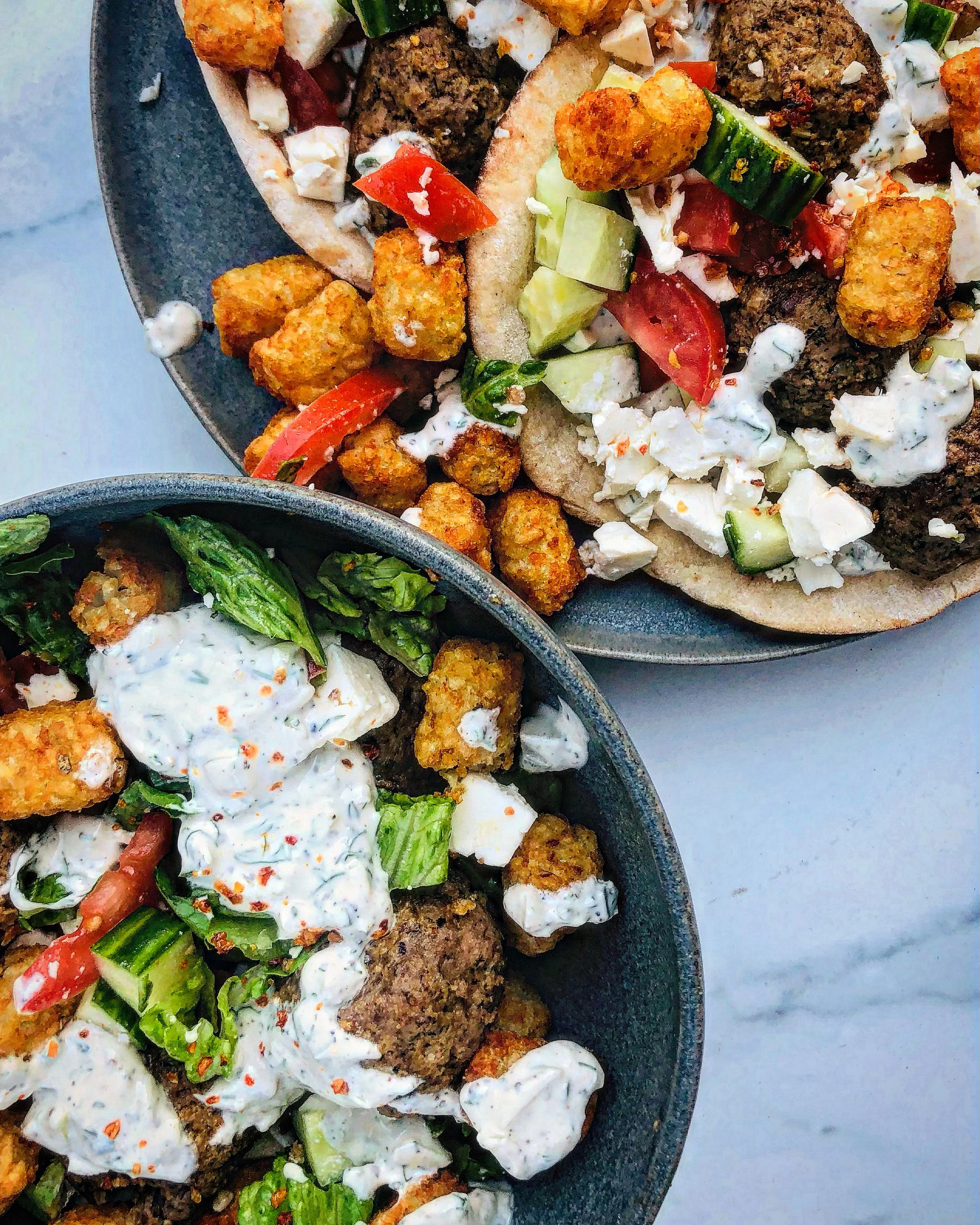 How do you prefer your lamb meatballs, in a pita, over salad, or how about both?!